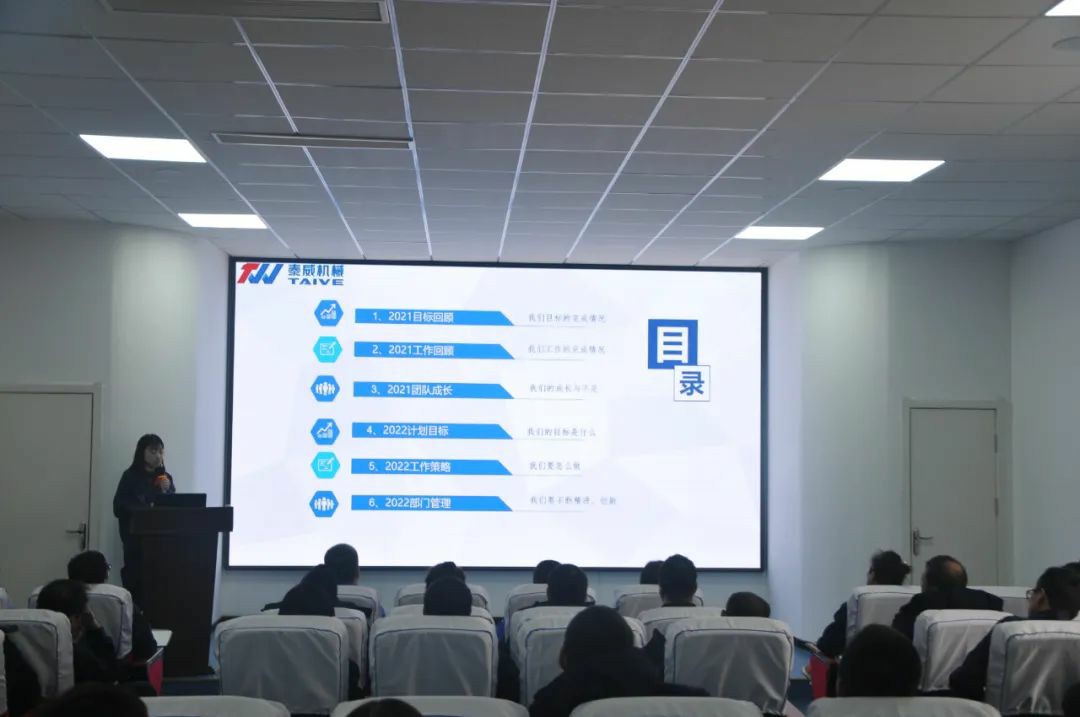 為了深入推進企業(yè)穩(wěn)步、高效、持續(xù)發(fā)展,總結公司在2021年各項工作開展情況,結合存在的問題,提出可持續(xù)性改進措施,打造具有泰威特色的發(fā)展理念和管理模式,2022年1月15日下午,遼寧泰威機械制造有限公司在一樓階梯會議室召開了2021年年終總結會,公司各部門管理人員參加了此次會議。
