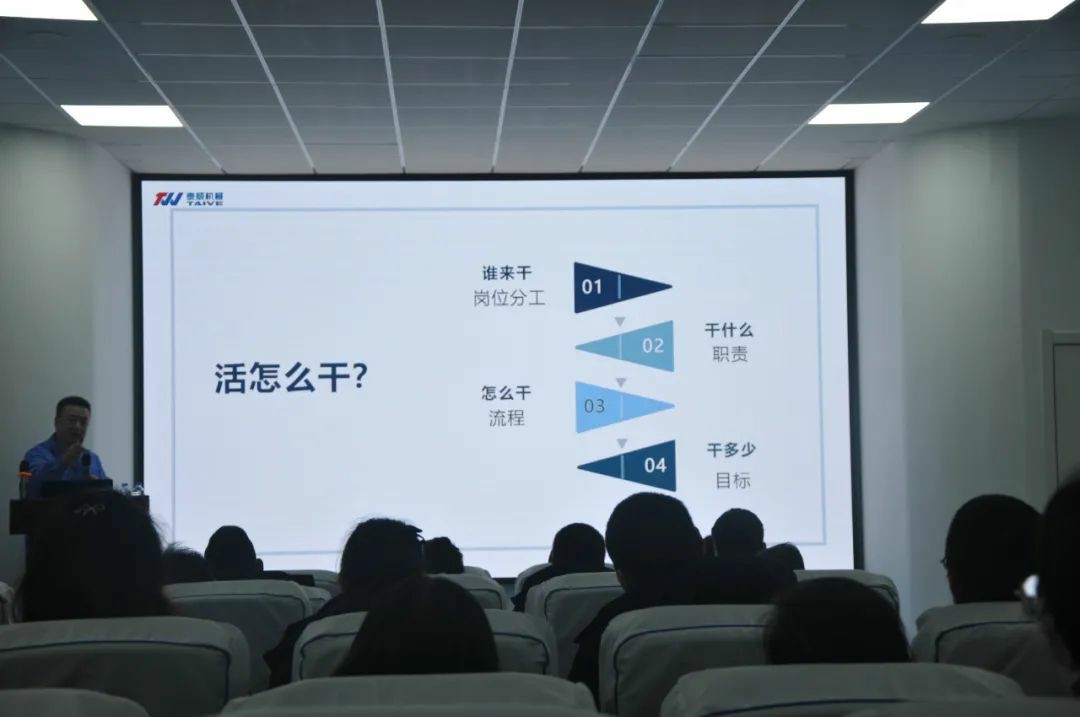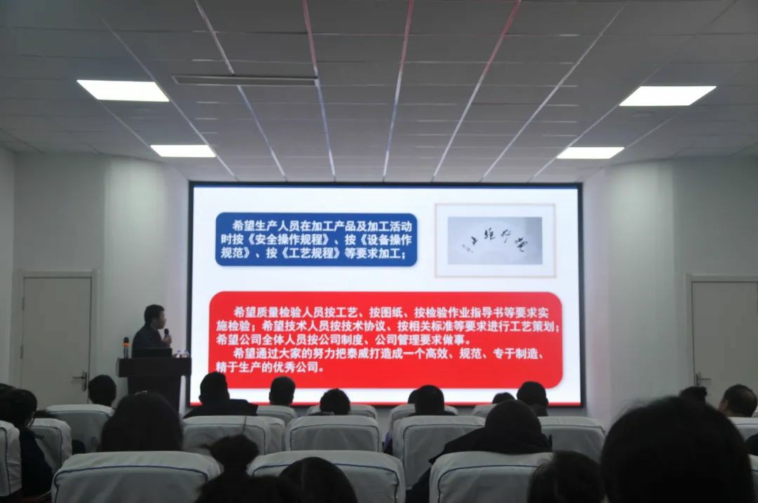質量部部長從“年終工作總結”“質量部統(tǒng)計分析”“明年工作計劃”三個模塊對質量部的全年工作進行總結,對團隊工作、計量管理、體系審核、外協供應商管理等方面的工作進行了簡要概括。針對產品質量數據,為2022年的產品質量控制提出了建設性建議。借用“將月就日”和“止距行規(guī)”兩詞,與大家共勉,希望各部門按照相關文件和流程要求嚴格執(zhí)行各項工作,通過努力把泰威打造成一個高效、規(guī)范、專注制造、精于生產的優(yōu)秀公司。