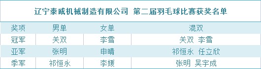 為了豐富員工的文體生活,培養(yǎng)員工的團隊精神,增強員工的凝聚力,促進員工之間的友誼,營造一個自信、陽光、充滿朝氣的企業(yè)氛圍,在鐵嶺市開發(fā)區(qū)總工會的支持下,遼寧泰威機械制造有限公司于2022年4月24日在開發(fā)區(qū)工人文化宮開展了第二屆羽毛球比賽,本次比賽以“文明、友誼、拼搏”為宗旨,秉承著勇攀高峰的精神和參與第一、友誼第一的比賽風尚,充分展示著拼搏進取的精神風貌。
