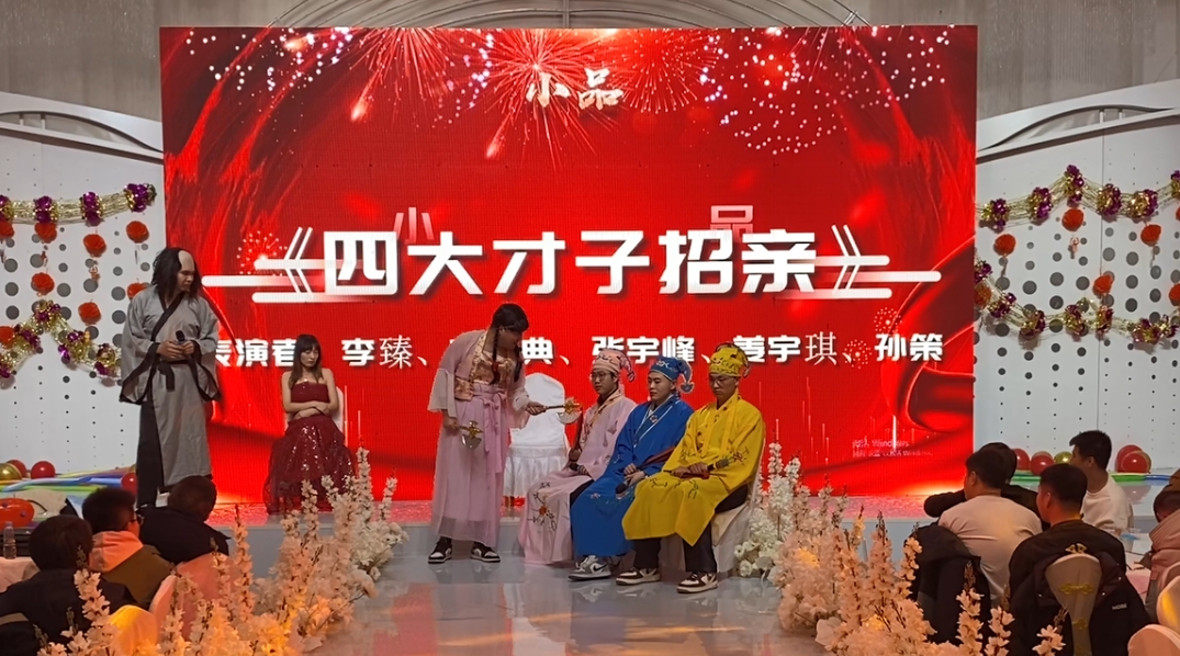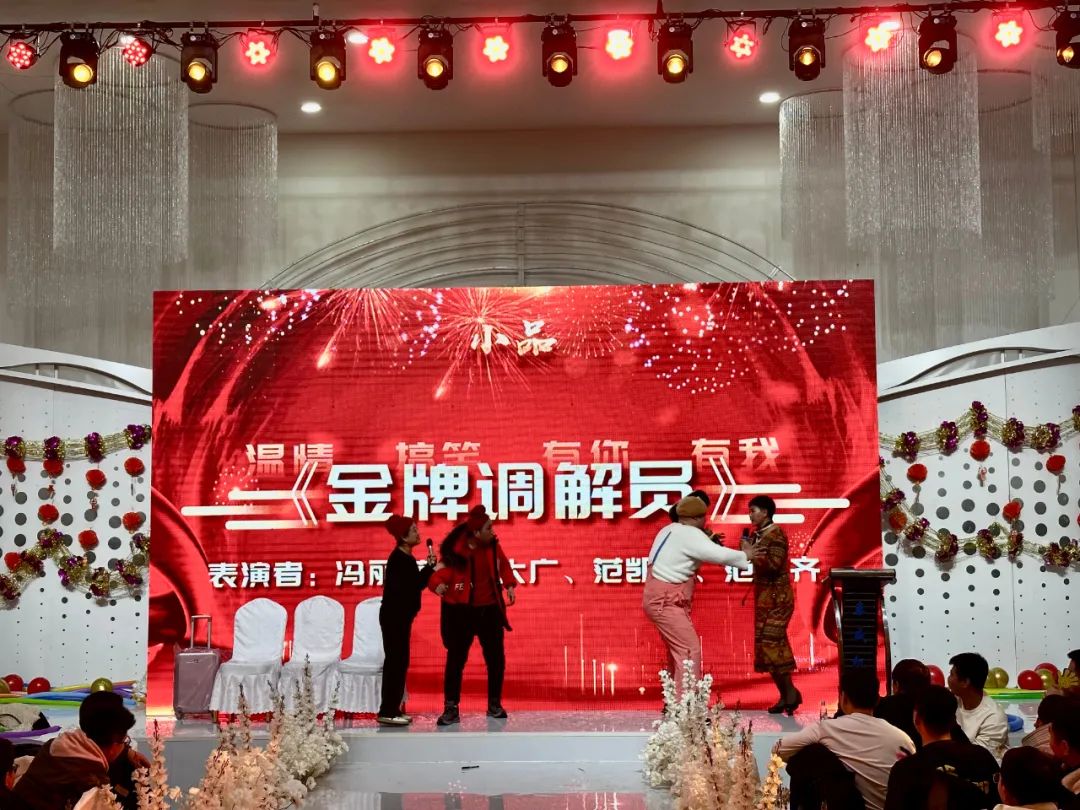 薈萃星光,觥籌熠熠,隨著頒獎典禮的結(jié)束,晚會在瀟灑的開場舞《驍》中正式拉開帷幕,隨后,公司各部門工作人員為大家?guī)砹宋乃囇莩?,歌曲演唱《笨小孩》、《海芋戀》、《著魔》,黑管獨奏《上海灘》,舞蹈表演《科目三》、《桃花朵朵開》,小品節(jié)目《四大才子招親》、《金牌調(diào)解員》,大合唱《壯志在我胸》,一段段精彩紛呈的節(jié)目收獲了臺下觀眾源源不斷的掌聲與歡呼聲,展現(xiàn)了泰威人蓬勃向上的青春風(fēng)采。其中,小品《金牌調(diào)解員》的演員們,憑借著精湛、搞笑的演技,得到了全場觀眾們的認可,小品被評為全場最佳節(jié)目。
